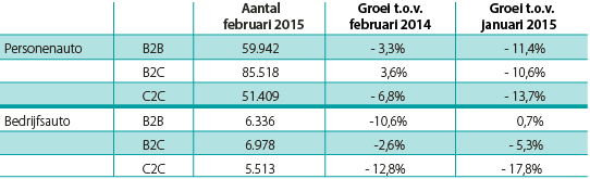 De occasionmarkt is het jaar goed gestart. Zowel in januari als in februari lagen B2C-verkopen boven het niveau van 2014. In totaal zijn er in januari en februari 2015 4,1% meer occasions verkocht dan in dezelfde maanden in 2014.