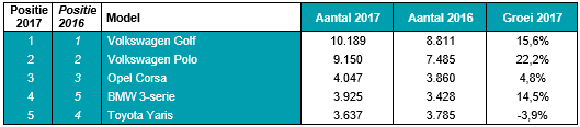 Verkopen van de populairste VW- en Opel-modellen liepen vorig jaar terug. Groei was er vooral bij een aantal kleine modellen, waaronder de Kia Picanto (+15,6%), Citroën C1 (+13,6%), VW Up! (+13,0%), Toyota Yaris (+8,8%) en Toyota Aygo (+8,6%). In aantallen was de Renault Clio de grootste groeier. Ook de duurdere Mercedes C-klasse (+8,4%) en BMW 3-serie (+4,5%) deden het goed, maar de concurrerende Audi A4 deed het juist minder (-6,9%). De grootste daler was de Peugeot 308 (-39%), waarvan in de 2016-cijfers veel verkopen van ongebruikte voorraadauto’s zaten. De Renault Mégane, Ford Ka, Opel Astra, Seat Ibiza en Fiat Punto werden minder verkocht op de occasionmarkt.
