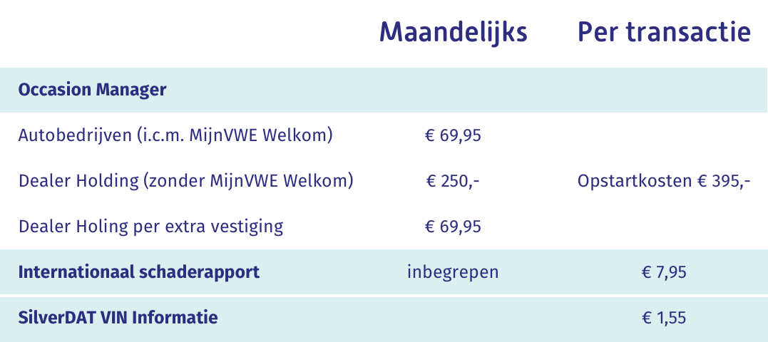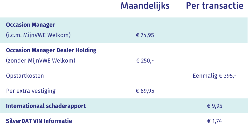 Geschikt voor autobedrijven en dealer holdings. Occasion Manager is te gebruiken voor één of meerdere vestigingen. Het abonnement is maandelijks opzegbaar, zonder opzegtermijn. Dat is wel zo flexibel. Hulp nodig bij het maken van je keuze? Neem dan contact op met onze experts!